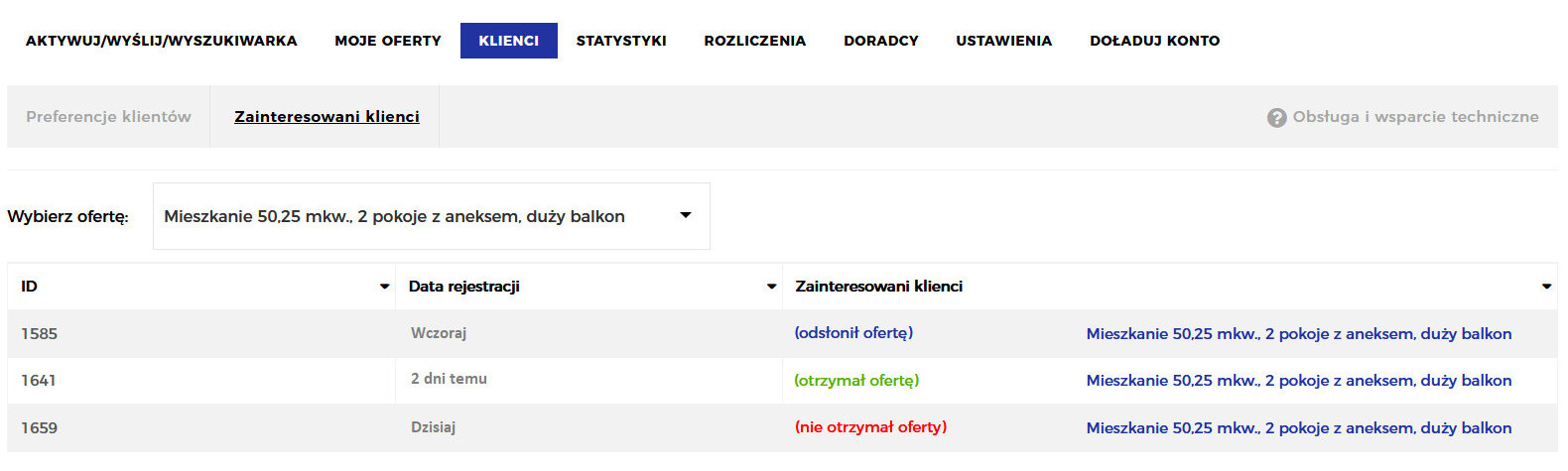 • Manualne wysyłanie ofert do dopasowanych klientów